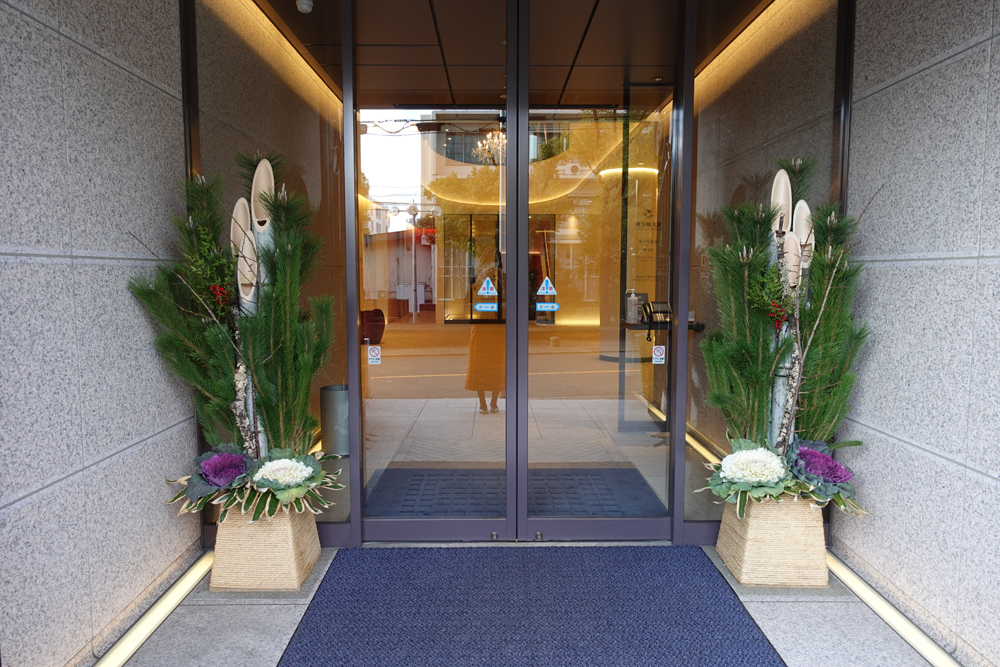 立派な門松が飾られた大阪本社の門をくぐり、気持ちを新たに出社!