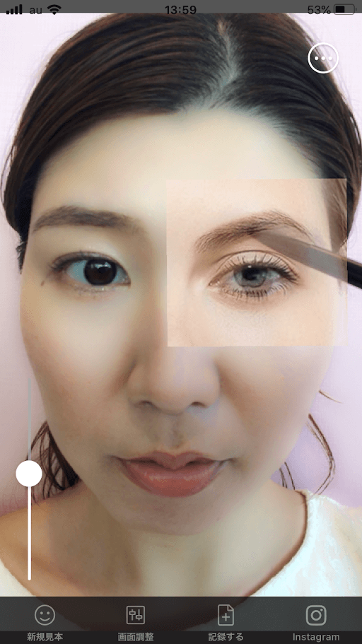 こんな感じで、画像と自分の顔を重ね合わせてメイクします。